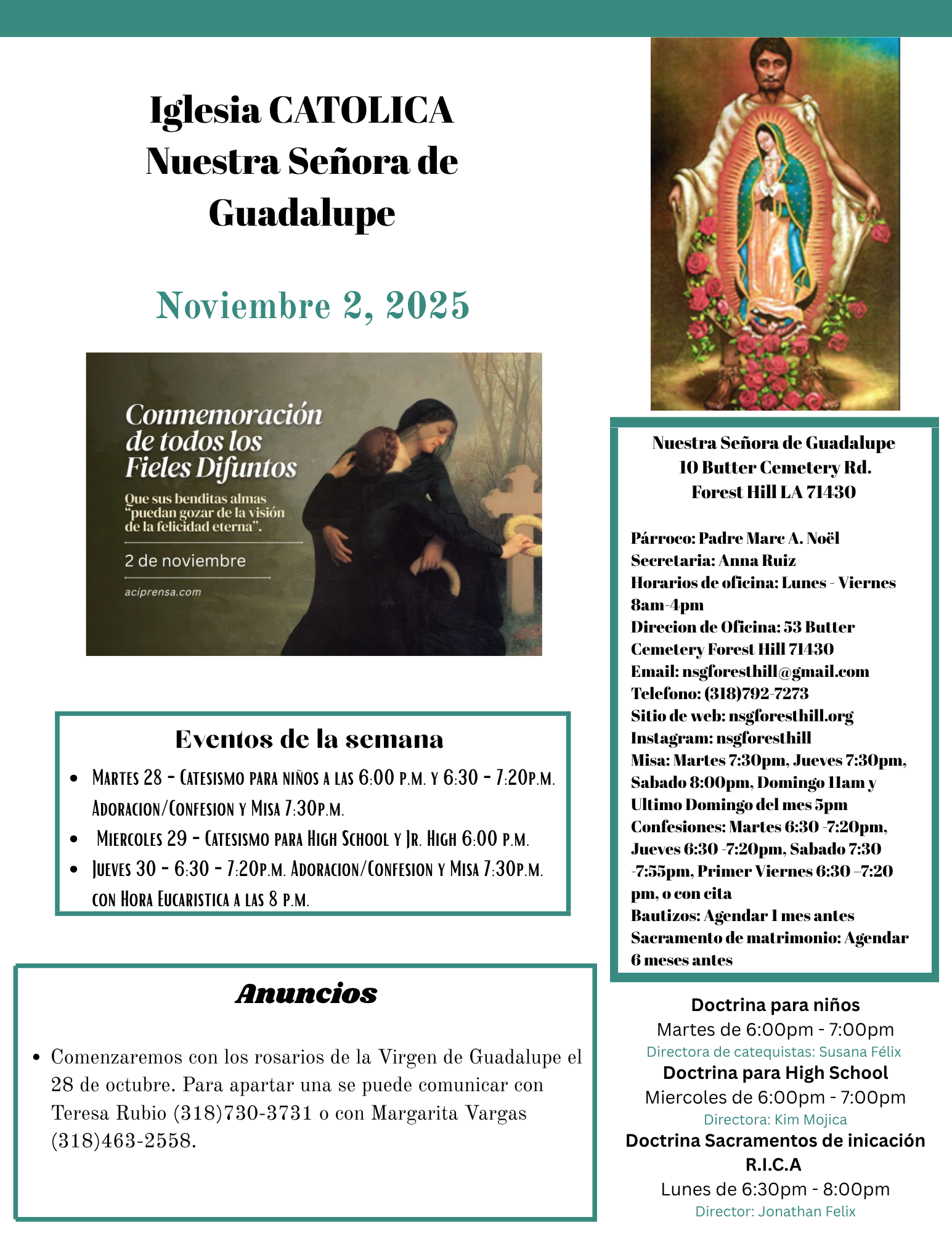 Manténgase conectado con todo lo que está sucediendo aquí. Descargue los boletines de la iglesia más recientes que contienen fotografías, historias, noticias e información sobre eventos.